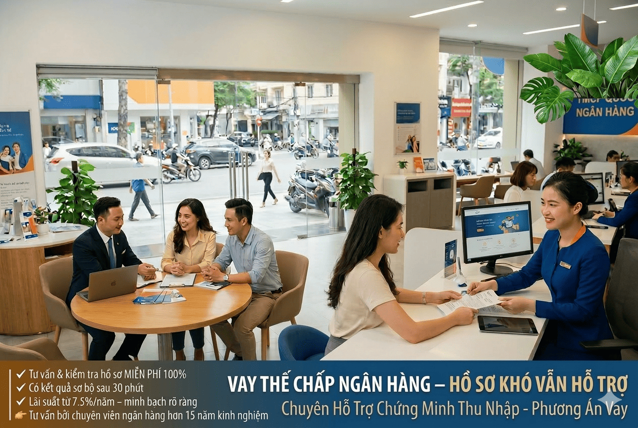 Chuyên viên ngân hàng nhiều năm kinh nghiệm Lãi suất tham khảo từ 7,5%/năm* tùy sản phẩm và từng thời kỳ Thời hạn vay từ 12 – 360 tháng