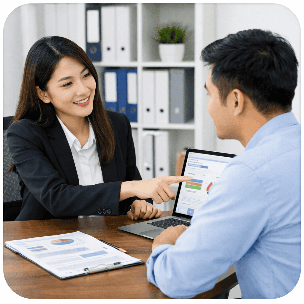 Bước 1 Chuyên viên tư vấn hồ sơ về lãi suất, hướng dẫn nộp hồ sơ